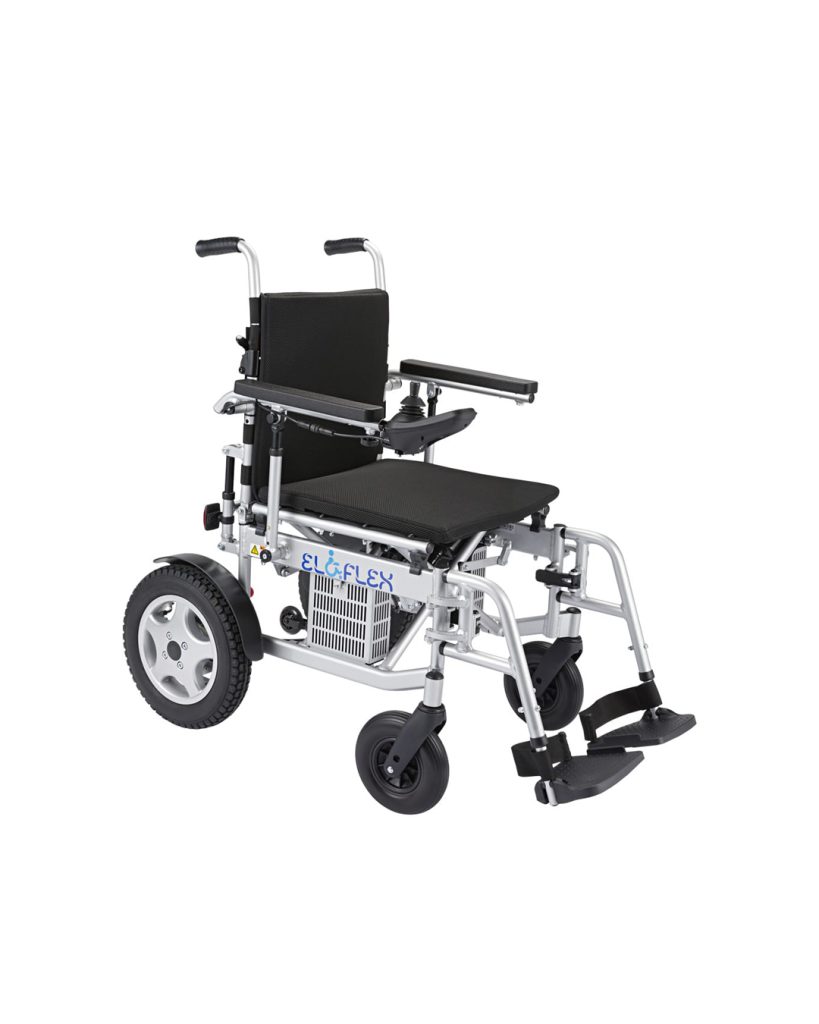 En hopfällbar elektrisk rullstol för personer upp till 200 kg.